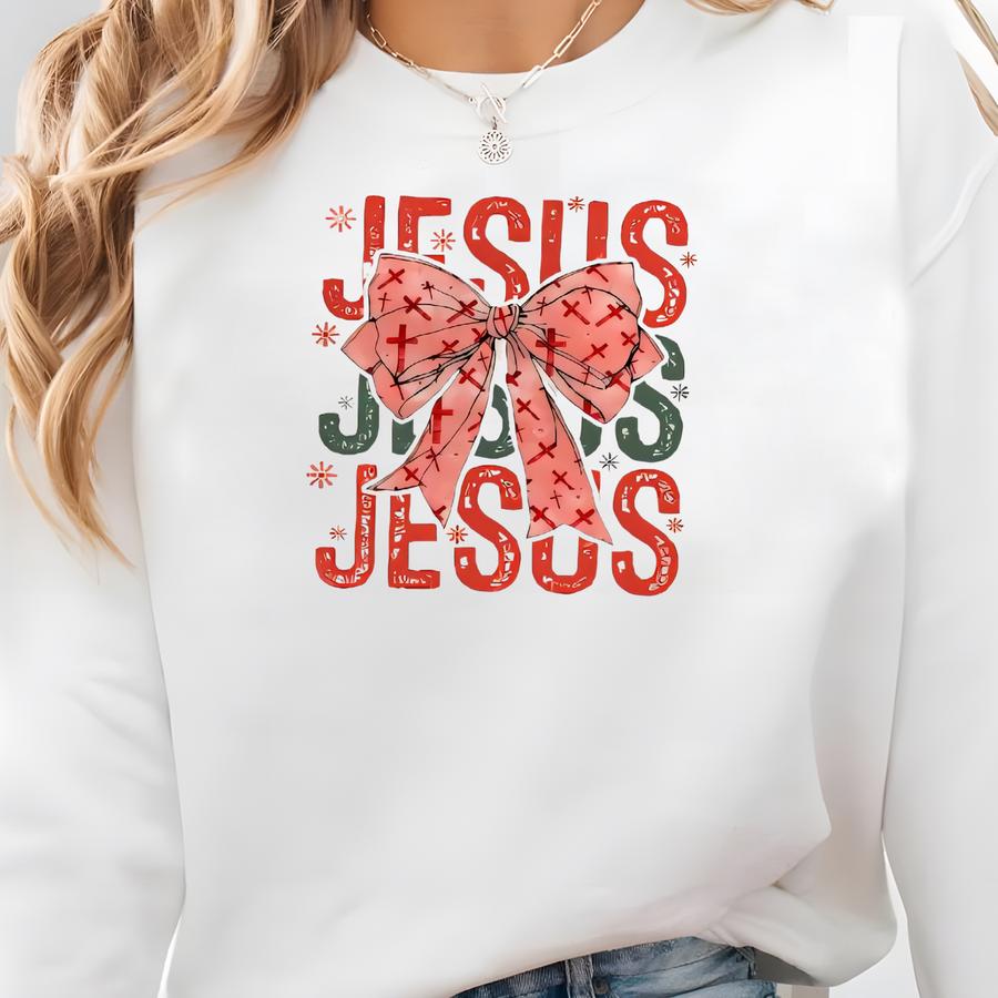 Jesus Bow Romper Sweatshirt, Baby Romper, Baby Bodysuit, Christian Baby Outfit, Newborn Christmas Outfit, Religious Holiday Baby Gift Sweatshirt