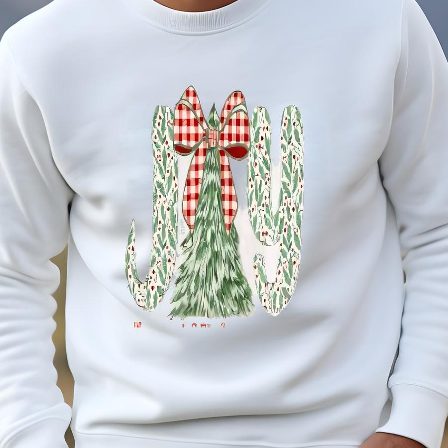 Joy To The World Christmas Shirt, Candy Cane Holiday Tee, Cute Tree Bow Graphic T-shirt, Festive Winter Top, Cozy Xmas Gift For Women Sweatshirt