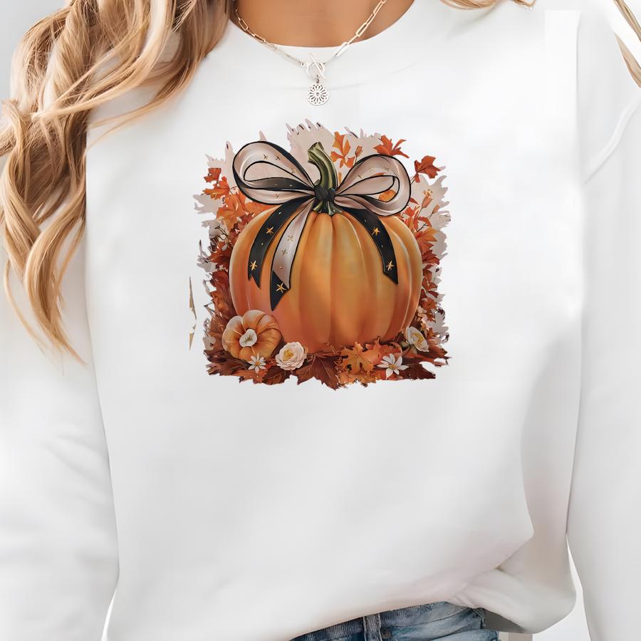 Pumpkin T-shirts, Sweatshirt, Hoodies: Bow Graphic, Fall Leaves, Floral Accent Sweatshirt