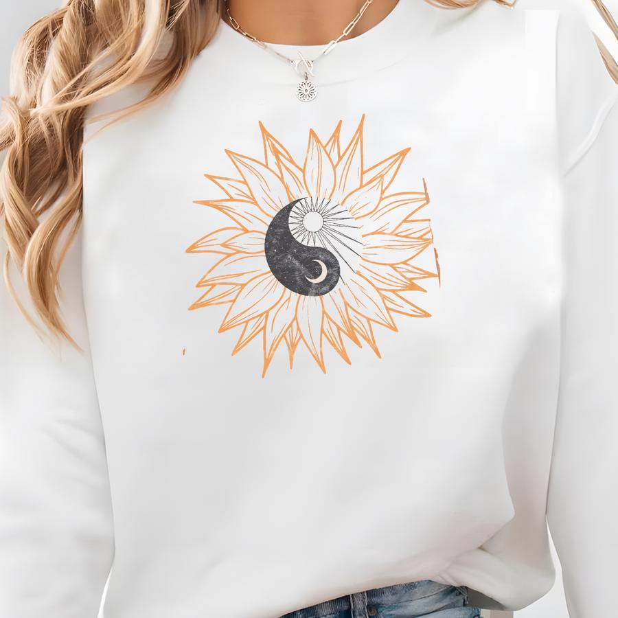 Yin Yang Suower Shirt Wild Flower Tee Ying Yang Sun And Moon Good Energy Solar System Zen Shirt Y2k Aesthetic Oversized Graphic Tee Sweatshirt