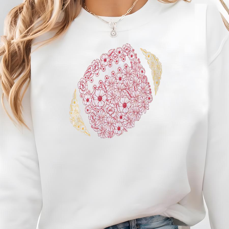 Floral Football Game Day Tee: Red Gold Shirt Sweatshirt