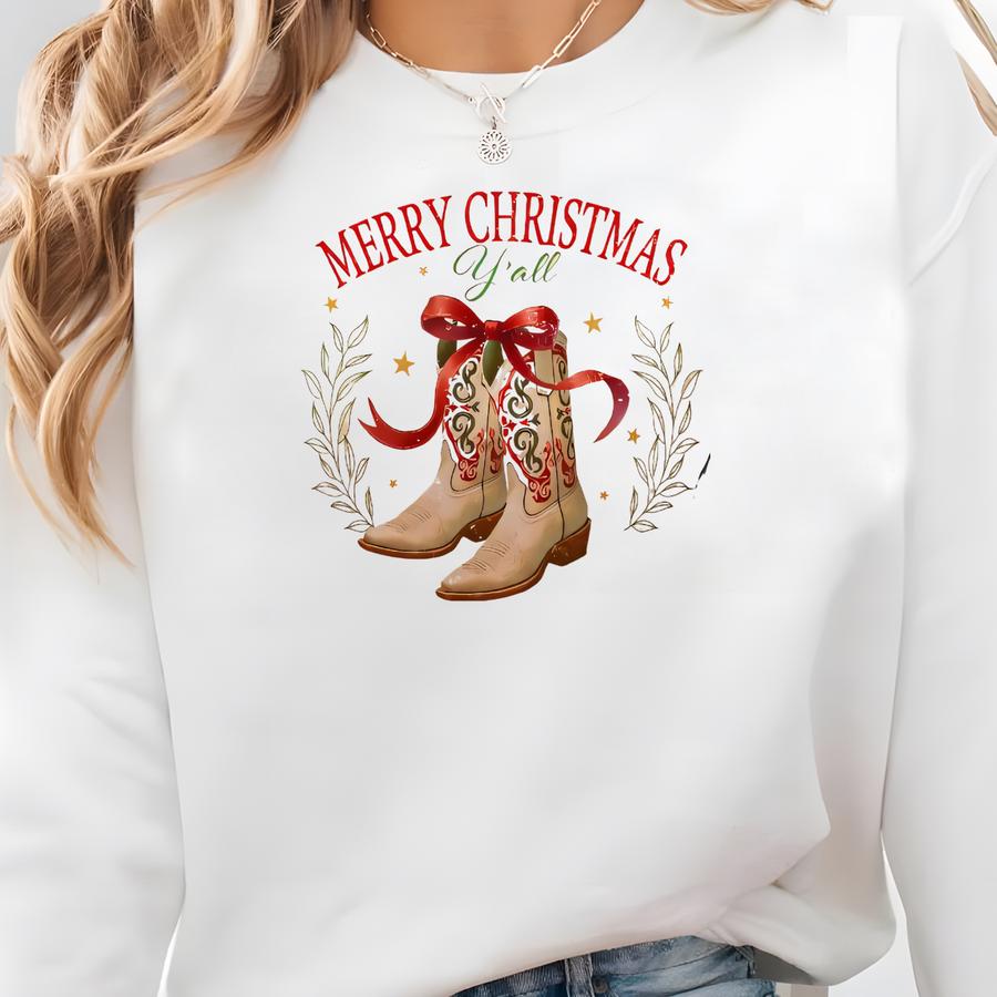 Merry Christmas Y'all Unisex Crewneck Sweatshirt, Holiday Apparel, Country Christmas Sweatshirts, Christmas Gifts Sweatshirt
