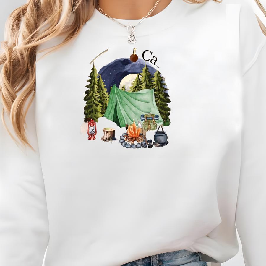 Custom Name Camping Life Ceramic Ornament, Ceramic Camping Scene Holiday Ornament Sweatshirt