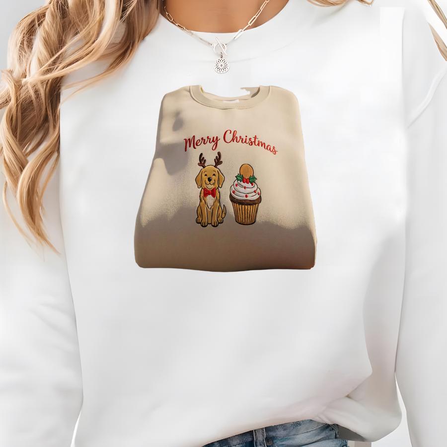 Golden Retriever Christmas Sweatshirt, Cute Dog Lovers Crewneck, Merry Christmas Cupcake Hoodie, Holiday Gift For Dog Lovers Sweatshirt