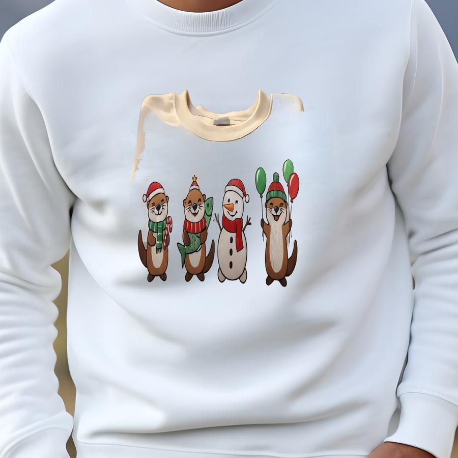 Christmas Otters Sweatshirt, Cute Otter Lover Holiday Crewneck, Sea Animal Christmas Shirt, Mom Xmas Gift For Her Sweatshirt