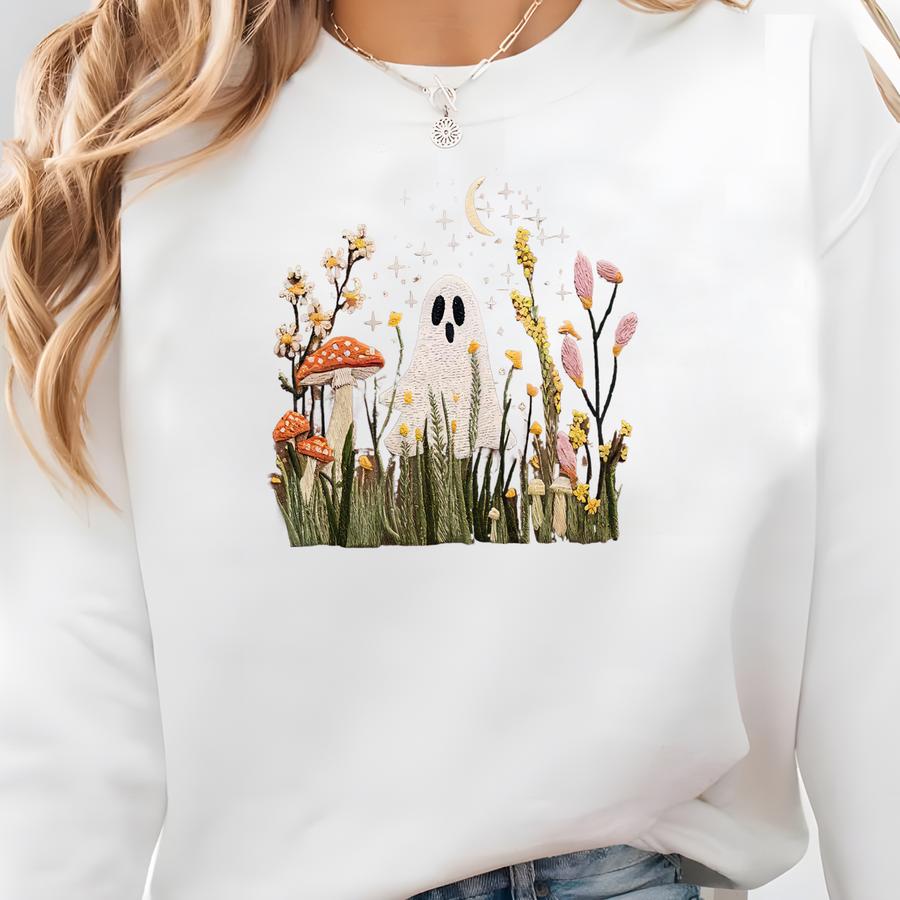 Halloween Ghost Sweatshirt: Wildflower Mushroom Design Sweatshirt