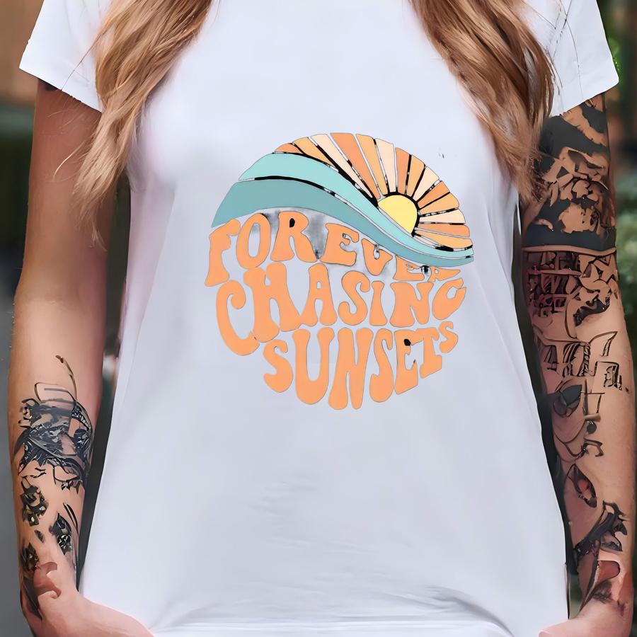 Forever Chasing Sunsets Sweatshirt: Beach Graphic Print T-shirt