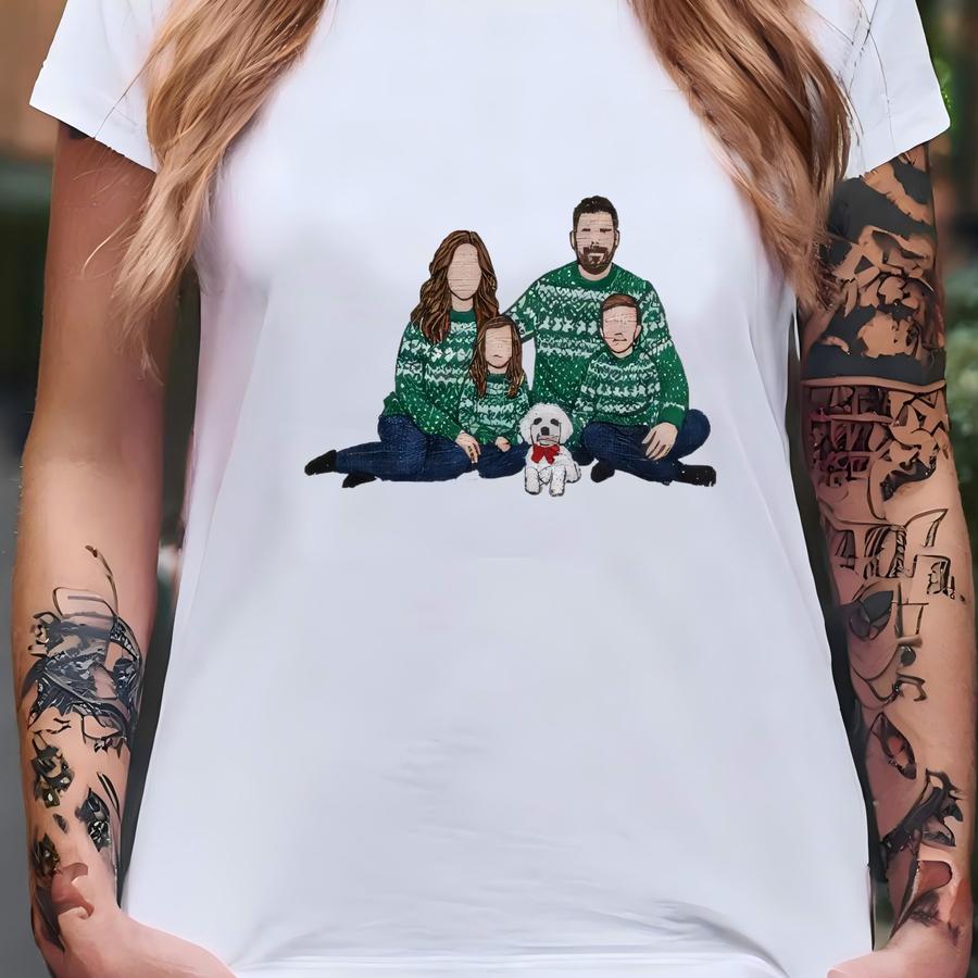 Custom Family Portrait Hoop, Hand Stitched Holiday Ornament With Pet, Personalized Family Keepsake Decoration T-shirt