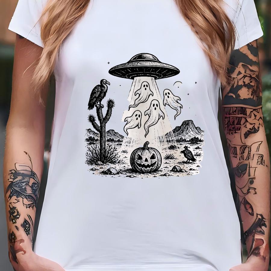 Vintage Style Ufo Ghost Shirt: Retro Halloween Alien Pumpkin Cotton T-shirt