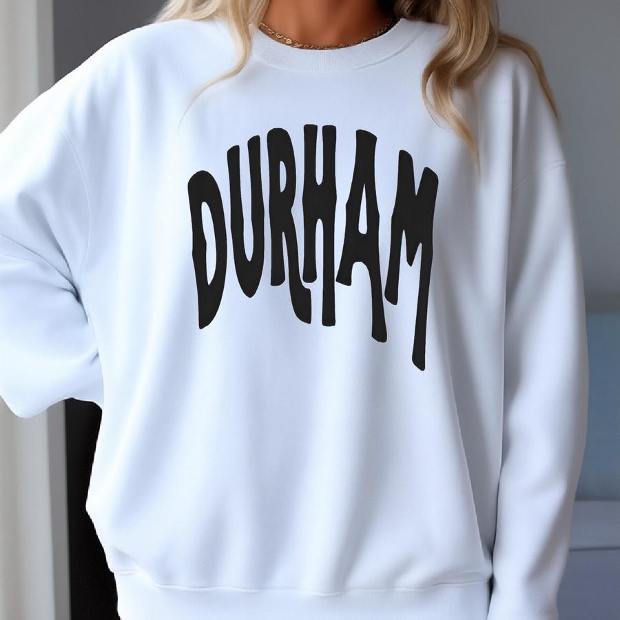 Durham Sweatshirt, North Carolina, T-shirt, White, Black, Football, Basketball, Gameday, Greek, Gift, Sorority, Graduation, Womens, Gym Sweatshirt