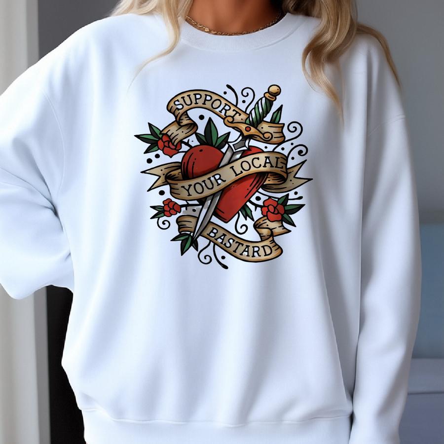 Support Your Local Bastard T-shirt, Heart Dagger Tattoo Tee, Funny Sarcastic Shirt, Perfect Gift To Your Cocky Friend, Edgy T Shirt Sweatshirt